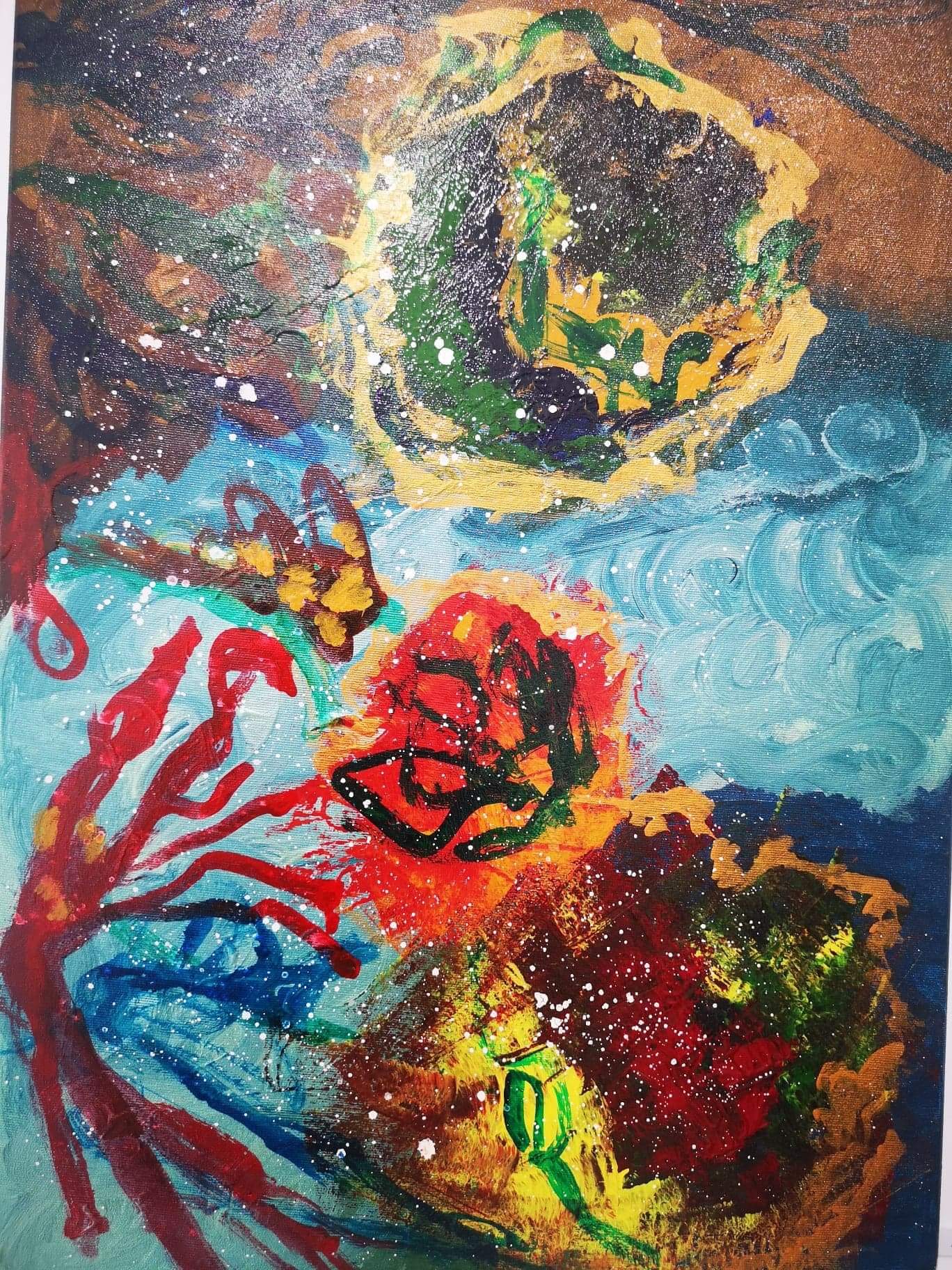 Title: Crystals of peace, Year 2022,technique acrilica on canvas, dimensions 50×70 cm.