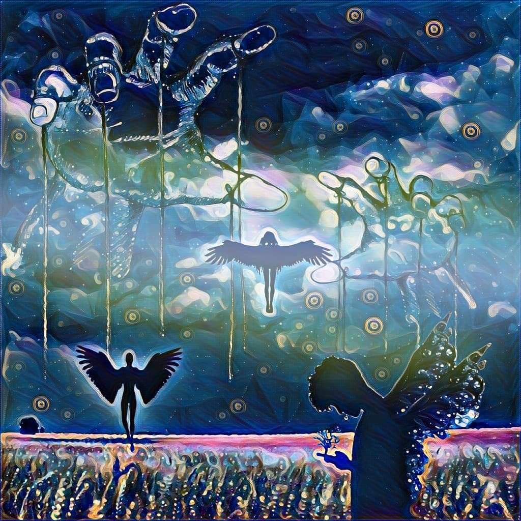 THE WORK ILLUSTRATES A FIRMED EUROPE. I IMAGINED THE OLD CONTINENT AS AN OLD MAN IN PROFILE BUT ALSO AS A FLAME, IT COMES OUT OF THE WEBSITE OF INFORMATION AND ENLARGES THE ANTENNA OF HUMAN AND ENERGY DNA TO WIN IN THE INFORMATION WAR. VICTORY FOR HUMANITY.
