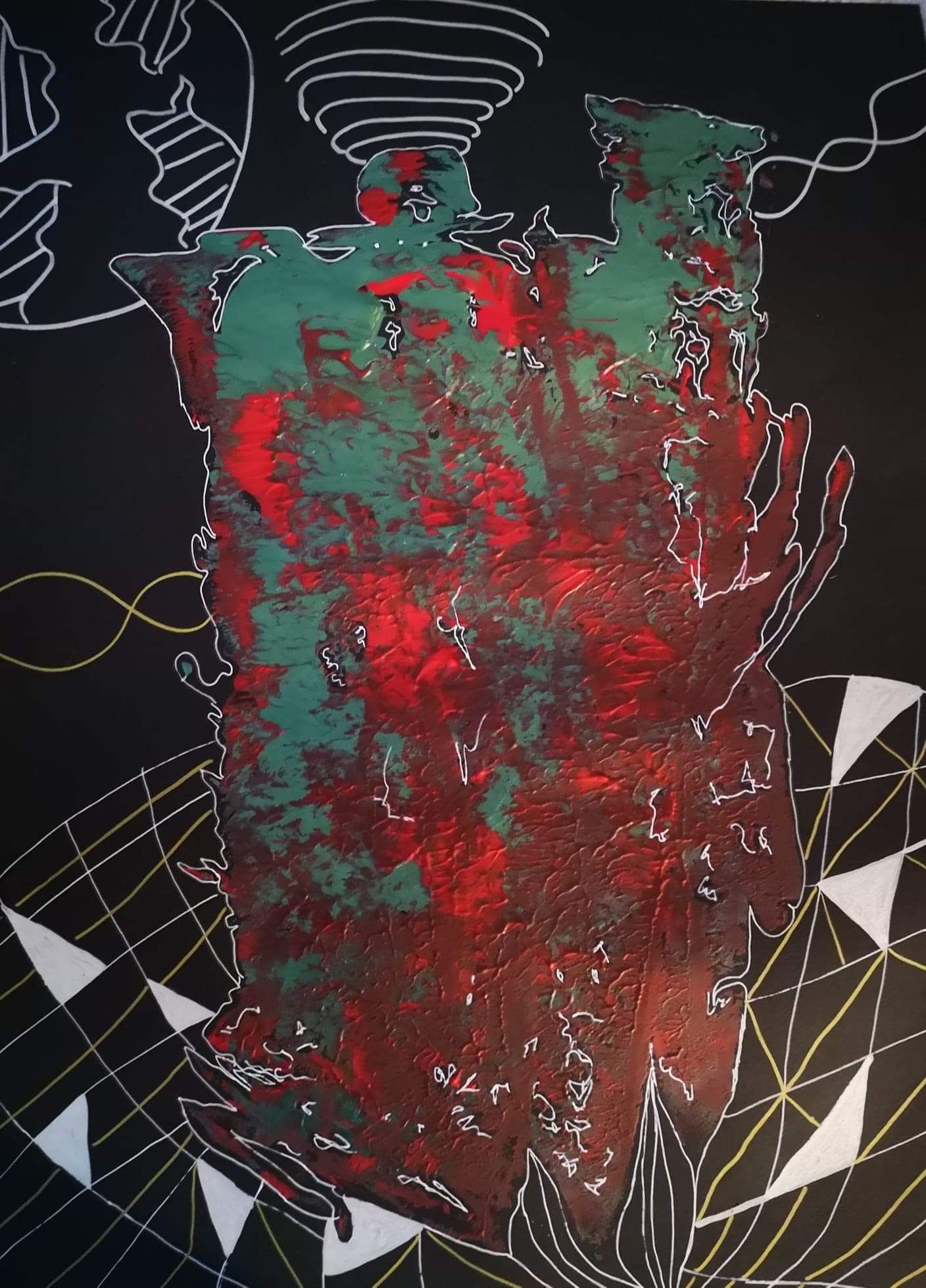 Invizibile war, year 2022, technique mixed media with aerography on canvas, dimensions 30×40 cm