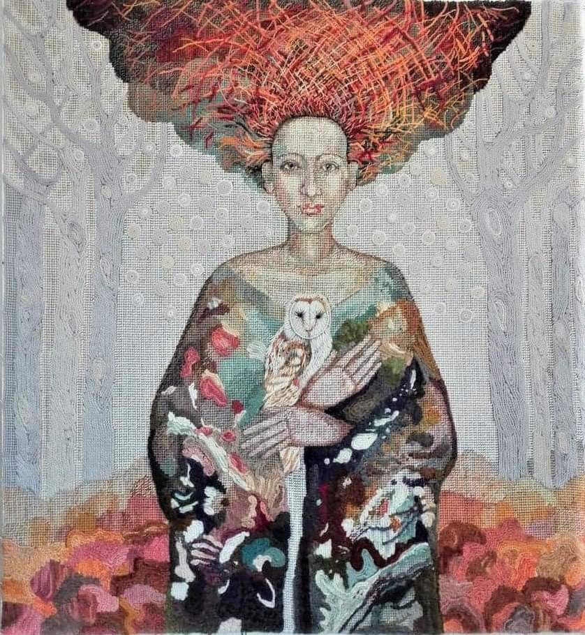 2) Detali from : Guardian Angels dim 160cm x130 cm ,tehnic muxt,hand embroiderie,textile modelaj