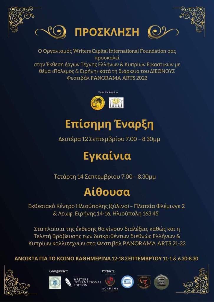Grazie al nostro Media Partner HELLENIC MEDIA Group e in particolare al Cyber-giornalista Dimitris Kannavos per la copertura di Panorama International Arts & Literature Festival 2022 ad Atene, Grecia.