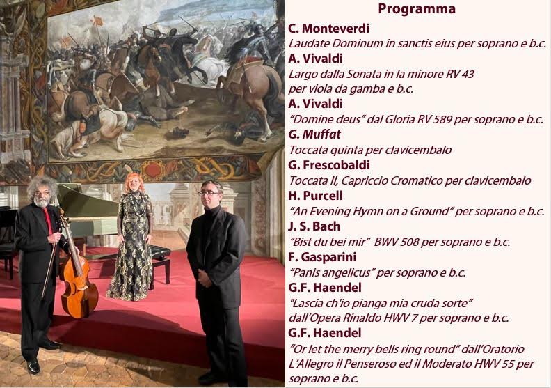 In programma musiche di Monteverdi, Frescobaldi, Vivaldi, Muffat, Purcell, Bach, Gasparini, Haendel. Questo sarà il terzo dei concerti del Festival inseriti, in collaborazione con la Fondazione CRA, negli itinerari di valorizzazione delle espressioni pittoriche e scultoree del Barocco Genovese presenti nella provincia alessandrina.