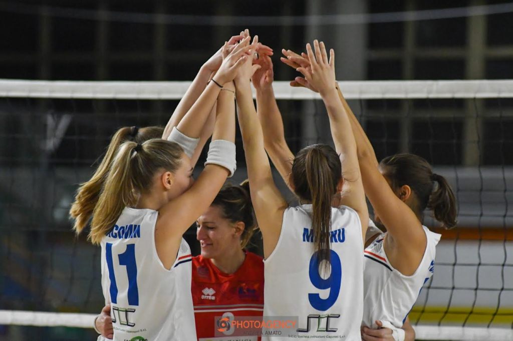 Il primo incontro giocato da Soriani e compagne contro Torino Play è stato praticamente un monologo come dimostra la differenza punti dei 3 set 75 a 50. Prima frazione con un inizio che si potrebbe definire di studio dell’avversario con cambi palla e contrattacchi da entrambe le parti ma ad un terzo del set cambio di scenario con le alessandrine sugli scudi che con la conquista di 7 punti consecutivi creano un solco non più rimontabile per le torinesi e pertanto chiusura set con il punteggio di 25 a 15. Nel secondo set nuovo avvio con alternanza di punti e nuovamente ad un terzo del cammino le ragazze di coach Marco Jus Ruscigni preso in mano il gioco colpo su colpo conquistano la seconda frazione con un eloquente 25 a 18. Nel terzo set le alessandrine salgono subito in cattedra per chiudere definitivamente la pratica e con un buon gioco, limitando al limite gli errori conquistano anche il terzo set per 25 a 17 e i 3 punti nella classifica del concentramento.