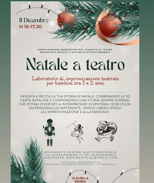 Continua la programmazione di Natale di MOVIMENTe Centro Multifunzionale! Questa domenica 11 dicembre vi invitiamo ad un evento speciale tenuto dalla bravissima Monica di @quizzyteatro .