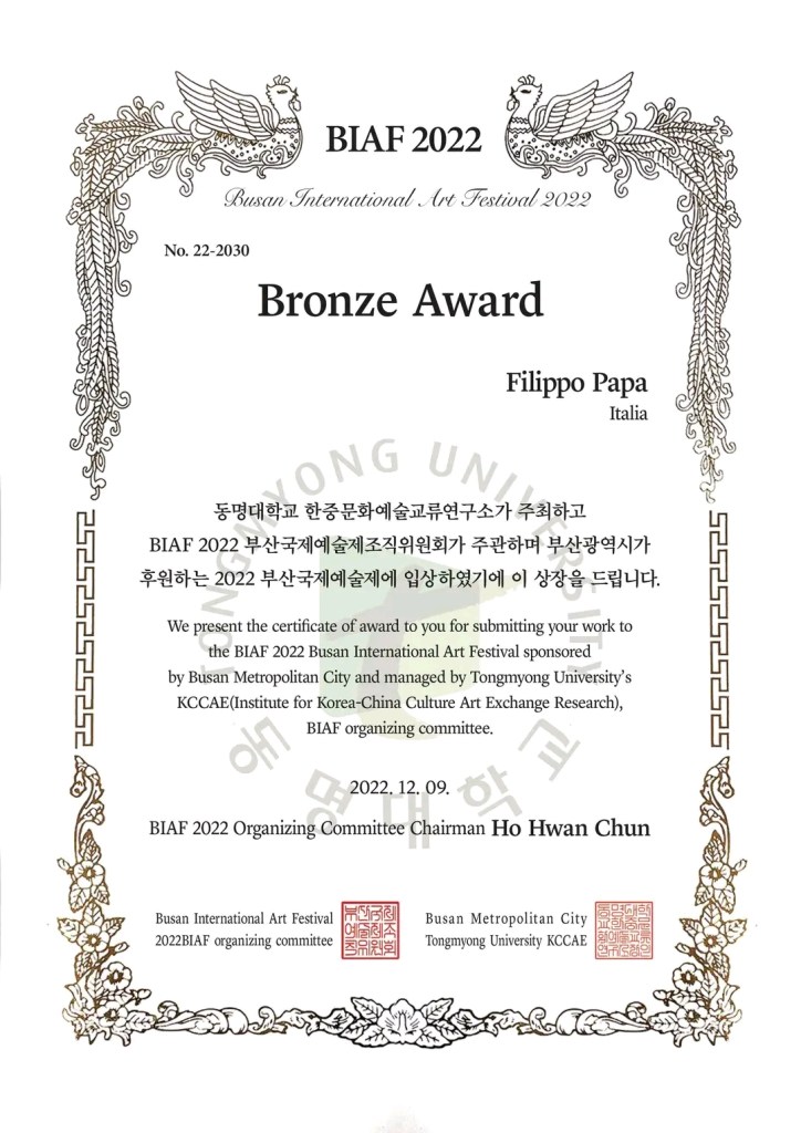 I miei ringraziamenti a Ho Hwan Chun, Presidente del Comitato Organizzatore BIAF 2022 e Michael Kazemi per l’eccellente organizzazione dell’evento.