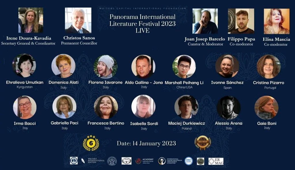Due incontri, tramite la piattaforma di zoom, di poeti e scrittori dall’Italia e da altri Paesi del mondo oggi pomeriggio, 22 gennaio 2023, organizzati dal gestore culturale, poeta, artista Joan Josep Barcelo e lo staff della Writers Capital Foundation : presidente Preeth Nambiar, segretaria generale Irene Doura-Kavadia, Johanna Devadayavu, Christos Sanos, Filippo Papa ed Elisa Mascia che hanno accolto e presentato i poeti e scrittori.