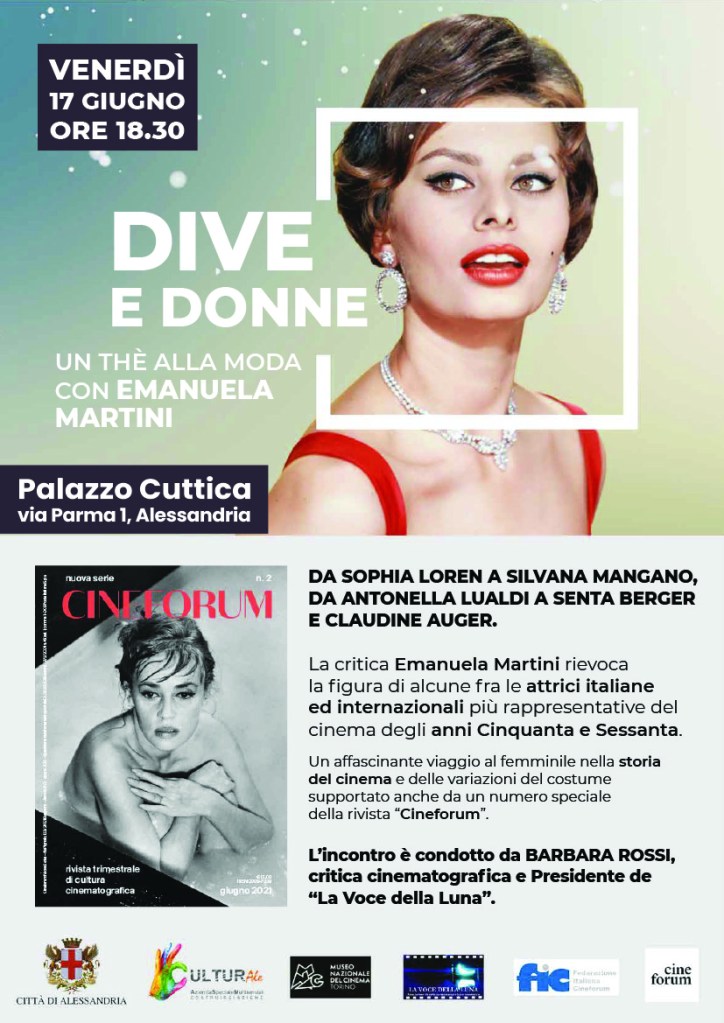 Emanuela Martini critica cinematografica e direttrice della rivista di cultura filmica “Cineforum” sarà protagonista di un incontro con il pubblico per parlare delle grandi dive del cinema italiano ed internazionale.